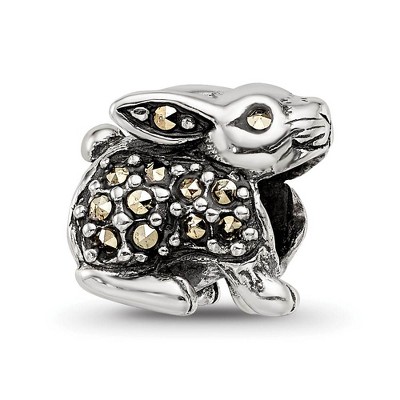 Create a spiritual piece of jewelry with this marcasite cross bible designed to reveal your devout spirit. Handcrafted in wax then cast in sterling silver with an antiqued finish, this sparkling charm measures roughly 11 x 11mm with a 4mm center. It is interchangeable as well as compatible with Reflections and other popular 3mm width bead style bracelets and necklaces. Additional features include: antiqued sterling silver design; accented with sparkling marcasite stones; measures roughly 11 x 11mm with a 4mm core; fits most 3mm bracelets and necklaces.
