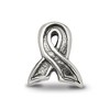 Help show your support and spread awareness for each person touched by cancer and other diseases with our handcrafted, sterling silver ribbon. Because it is not color specific, it is perfect for everyone regardless of the cause. Measuring roughly 11 x 8mm with a 4mm bead hole, this symbolic charm is interchangeable as well as compatible with Reflections and other popular 3mm width bead style bracelets and necklaces. Additional features include: designed from sterling silver with an antique finish; bead hole measures 4mm in diameter; handmade using the lost wax casting process; fits most 3mm bracelets and necklaces.