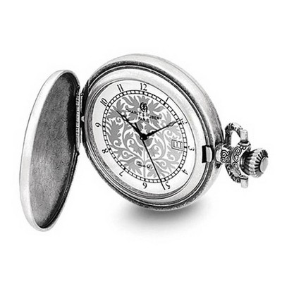 Black Bow Jewelry Charles Hubert Chrome-finish Floral Design Analog Pocket Watch 44mm