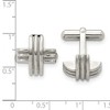 Classic elegance, perfect for every occasion! These polished stainless-steel cuff links feature a fancy grooved x and convex design with a bullet back toggle clasp. They are approximately 16mm (5/8 inch) in width by 16mm (5/8 inch) in length. Not suitable for engraving. Additional features include: crafted from stainless steel; features a fancy convex design; approximate size is 16mm w x 16mm l; average weight for the pair is 8.56 grams.