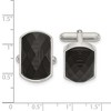Product Name: Black Bow Jewelry Stainless Steel & Black Carbon Fiber Faceted Cuff Links, 22 x 14mm