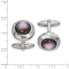 Product Name: Black Bow Jewelry Stainless Steel, Black Mother of Pearl Round Cuff Links, 19mm (3/4 In)