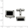 Refine your subtle style with these polished and black-plated stainless steel cuff links featuring a beveled edge rectangular design and a bullet back closure. The two-tone top measures approximately 15mm (9/16 inch) in width by 18mm (11/16 inch) in length. Additional features include: crafted with black plated stainless steel; features a polished finish; approximate size 15 x 18mm (9/16 x 11/16 inch); weight is approximately 11.97 grams.