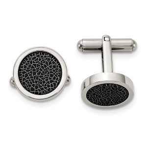 Classic elegance, perfect for every occasion! These round stainless-steel cuff links feature a polished black stoving varnish design with a bullet back toggle clasp. They are approximately 16mm (5/8 inch) in diameter. Not suitable for engraving. Additional features include: crafted from stainless steel & black stoving varnish; features a two tone flat design; approximate size is 16mm w x 16mm l; average weight for the pair is 11.84 grams.