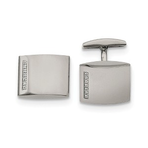 Take your image and style up a notch with these polished stainless steel cuff links featuring a convex rectangular design accented with pave set cubic zirconia gemstones. The approximate size is 15 x 20mm (9/16 x 3/4 inch). Additional features include: polished stainless steel and cubic zirconia design; approximate size 15 x 20mm (9/16 x 3/4 inch); suitable for engraving; weight is approximately 13.55 grams.