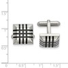 Black Bow Jewelry Stainless Steel & Black Rubber Striped Square Cuff Links, 15mm