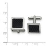 - Unique Features - These men's cuff links are crafted from stainless steel and have a polished finish. They also feature black carbon fiber accents. Approximate size 16 x 16mm.