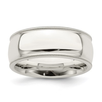 A tried and true favorite style featuring a low domed or half round center with milgrain edges created from solid sterling silver. This polished men's band has a comfort fit shank, is approximately 2mm in thickness (standard weight) and 7mm in width. Suitable for engraving.Made in the U.S.A. Additional features include: created from polished sterling silver; comfort fit, low domed or half round center, milgrain edge; approximate width 7mm, thickness 2mm; suitable for engraving.