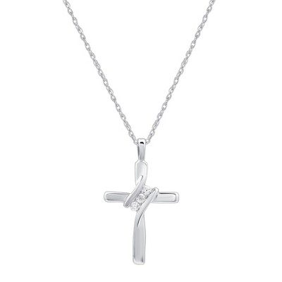 - Unique Features - A rhodium plated sterling silver cross featuring an open-back beveled design is set with 20 clear cubic zirconia stones and measures 7/8 inch x 1-1/2 inches with the bail. It comes ready to wear on a matching 18 inch cable chain finished with a spring ring clasp. Each necklace includes a copy of the following artist poem and quote from scripture printed in English and Spanish. STEADFAST LOVE - His love is unchanging, today and tomorrow. He is wit...See description for more