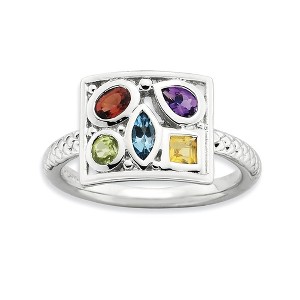 • Unique Features - A collage of genuine garnet, amethyst, peridot, blue topaz and citrine stones are bezel set in rhodium plated sterling silver, creating a beautiful rainbow of color atop a 2. Mm crisscross designed band. The total gem weight is .9 of a carat. Guaranteed to fit together perfectly with all of the mix and match Stackable Expressions rings.