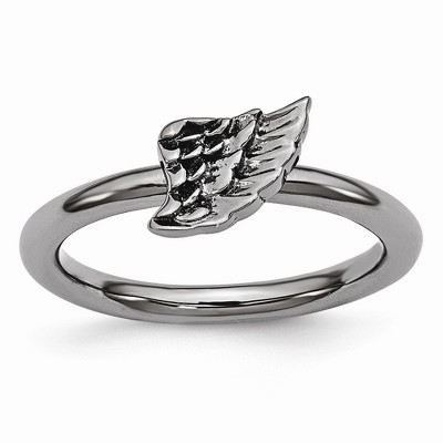 Product Name: Black Bow Jewelry Rhodium Plated Sterling Silver Stackable 6mm Angel Wing Ring