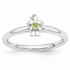 Black Bow Jewelry Rhodium Plated Sterling Silver Stackable Peridot 7mm Girl Ring - 1 of 4