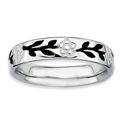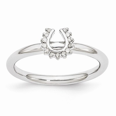 Create a look that is all your own with a fun assortment of rings that looks great alone or stacked in a collection to express your own unique style. This classic style horseshoe ring fashioned from tarnish resistant rhodium plated sterling silver features a 7mm black diamond horseshoe atop a 2.5mm width band. Prong set with round, black heat-treated, I2-I3 clarity diamonds totaling 0.1 carat. Guaranteed to fit together perfectly with all of the mix and match Stackable Expressions rings. Additional features include: rhodium plated sterling silver; round, black diamonds 0.11 cttw; horseshoe 7mm, band width 2.25mm; average item weight is 2.48 grams.