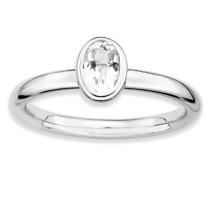 Black Bow Jewelry Silver Stackable Oval White Topaz Solitaire Ring - 1 of 4