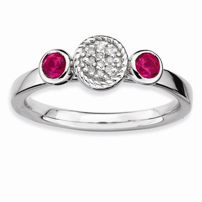 Peridot, August's birthstone is known to bring wealth and prosperity; it also symbolizes friendliness, purity and simplicity. Diamonds of course are said to be a girl's best friend. This 2.5mm polished band fashioned from rhodium plated sterling silver is prong set with 10 round diamonds flanked by two bezel set round peridot gems. The round center cluster mounting is approximately 6mm in width. Guaranteed to fit together perfectly with all of the mix and match Stackable Expressions rings. The color range varies on all natural stones so please allow for slight variations in shades. Gemstone and diamond treatment: natural, not enhanced. Additional features include: crafted with rhodium plated sterling silver; bezel set with 2 peridot gemstones, .25 cttw; prong set with i3 clarity, h-i color diamonds, .05cttw; average item weight is 3.45 grams.