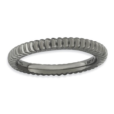Product Name: Black Bow Jewelry Stackable Black Ruthenium Plated Silver Domed Wheat Band