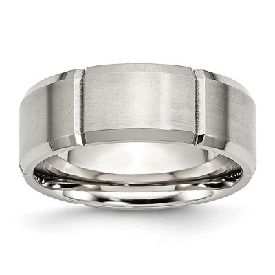 Refine your style with a distinctive ring crafted from 316L stainless steel that mirrors your unique personality. This 10mm flat band features gray cable inlays, a brushed and polished finish and rounded inside edges. Wide bands fit tighter on the finger, so you might want to consider moving up a size for a more comfortable fit. Additional features include: 316l stainless steel; brushed and polished finish; comfort fit, 10mm band; average weight 12.14 grams.