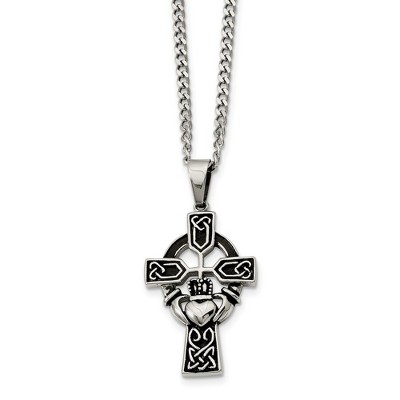- Unique Features - Express your bold attitude with a chunky necklace that offers eclectic style! Created from 316l stainless steel, this antiqued pendant measures approximately 1 1/4 inches by 1 3/4 inches including the bail. It comes with a 24-inch, 5mm polished curb chain finished with fancy lobster clasp.
