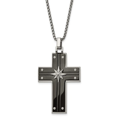 - Unique Features - Celebrate and honor all special occasions with jewelry of religious significance! Our collection of spiritually inspired designs that show faith, hope and devotion are perfect for commemorating life's milestones. This unisex stainless steel necklace features a small polished and black enamel cross pendant that is approximately 16mm (5/8 inch) in width by 32mm (1 1/4 inch) in length, which includes the bail. It hangs on a 2mm width by 24-inch-long...See description for more