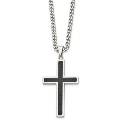 - Unique Features - Celebrate and honor all special occasions with jewelry of religious significance! Our collection of spiritually inspired designs that show faith, hope and devotion are perfect for commemorating life's milestones. This men's stainless steel necklace features a polished and black genuine leather inlay cross pendant that is approximately 30mm (1 3/16 inch) in width by 54mm (2 1/8 inch) in length, which includes the bail. It hangs on a 2.5mm width by...See description for more