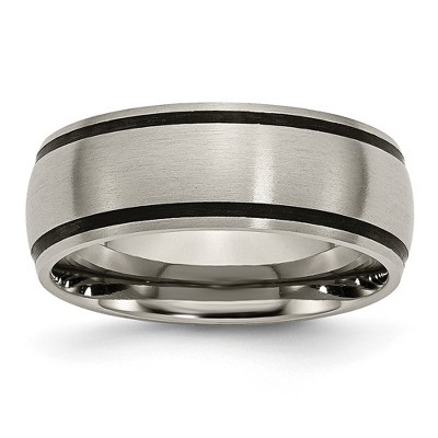 Unique Features - The black rubber accent stripe on this beautiful, stainless steel band creates a unique twist on a traditional style ring. This flat standard fit band measures 8mm wide and features a trendy, satin brushed finish that is equally suitable for men or women. Available in whole and half sizes 6-13.