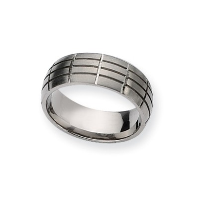 This attractive, brushed and polished grooved ring is fashioned from stainless steel and is great for the active man. The comfort-fit band measures approximately 8mm in width and less than 2.5mm in thickness. Suitable for engraving. Additional features include: crafted from 316l stainless steel; measures 8mm in width; brushed and polished finish; comfort fit.