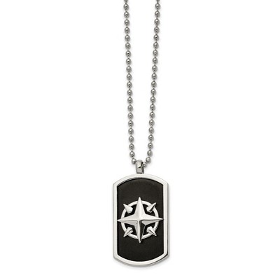 Black Bow Jewelry Stainless Steel Polished & Black Plated 30mm Compass Necklace, 22 Inch