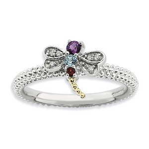 Product Name: Black Bow Jewelry Sterling Silver, 14k Accent, Gemstone & Diamond Dragonfly Stack Ring