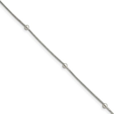 Black Bow Jewelry Sterling Silver 2mm, Snake Chain Anklet, 9 Inch