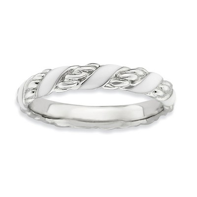 Use enamel bands to effortlessly create a meaningful theme or message. Featuring an unending design created from black enamel this 3. Mm sterling silver band is finished with tarnish resistant rhodium plating so it will retain its bright white finish. Guaranteed to fit together perfectly with all of the mix and match Stackable Expressions rings. Additional features include: 3.5mm, rhodium-plated sterling silver band; black enameled design; wear it alone or in meaningful combinations; average metal weight is 2.77 grams.