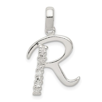 Adding a touch of glamour to your favorite initial is seven prong-set clear cubic zirconia gemstones. This gleaming pendant is fashioned from sterling silver and will fit up to a 4mm width classic style chain. Each letter H is approximate 16mm (5/8 inch) in width by 24mm (15/16 inch) in length, which includes the bail. Chain not included. Additional features include: polished sterling silver design; prong set with clear cz gemstones; approximate length with the bail, 24mm; average weight is 1.34 grams.