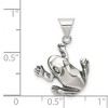 Jump-start your style with this charming frog pendant fashioned from antiqued sterling silver. It features a two-dimensional design and measures approximately 17mm (5/8 Inch) in width by 23mm (15/16 Inch) in length, which includes the tapered bail. Chain not included. Additional features include: solid sterling silver open back design; antiqued finish; approximate size is 17 x 23mm with the bail; average weight is 1.56 grams.
