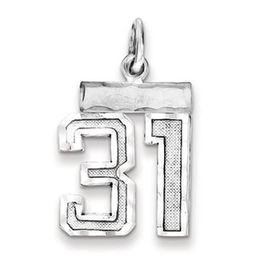 Black Bow Jewelry Sterling Silver, Athletic Collection, Large Polished Number 31 Pendant