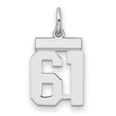 Celebrate your favorite sports player, lucky number or milestone date in your life with a prominent rhodium-plated sterling silver charm. Each polished number is approximately 13mm (1/2 Inch) in length, which is finished with a 2mm top bar and a classic jump ring that will accommodate up to a 3mm chain. Made in the U.S.A. Chain not included. Additional features include: rhodium-plated sterling silver design; polished laser cut flat design; approximate length 15mm; average weight is 0.56 grams.