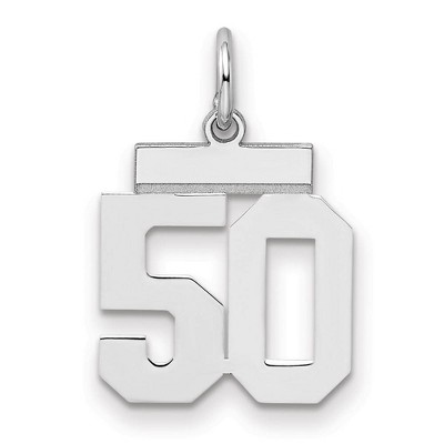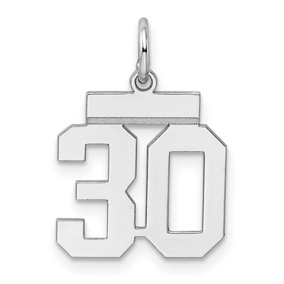 Celebrate your favorite sports player, lucky number or milestone date in your life with a prominent rhodium-plated sterling silver charm. Each polished number is approximately 13mm (1/2 Inch) in length, which is finished with a 2mm top bar and a classic jump ring that will accommodate up to a 3mm chain. Made in the U.S.A. Chain not included. Additional features include: rhodium-plated sterling silver design; polished laser cut flat design; approximate length 15mm; average weight is 0.68 grams.
