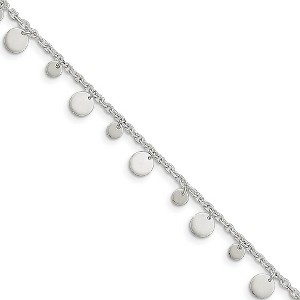 • Unique Features - Beautify your ankles with a chic dangling anklet made of shimmering sterling silver. Dancing along the length of this 2mm width cable chain are 4mm and 6mm polished discs that flash light with every movement. A lobster clasp keeps this stylish, 10-inch ankle bracelet securely fastened.