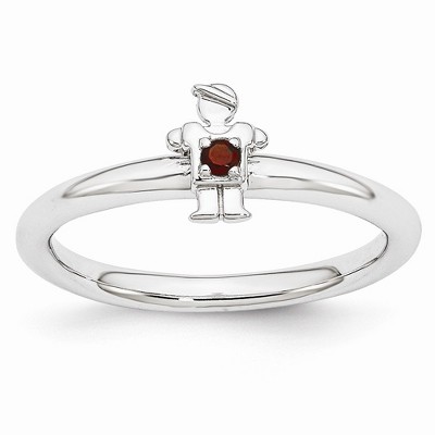 • Unique Features - Garnet, January's birthstone symbolizes romance, love and passion; it is also believed to bring inspiration. This 2.25mm smooth polished band fashioned from rhodium plated sterling silver features a flower with silver looped petals and a prong set faceted garnet in the center. Guaranteed to fit together perfectly with all of the mix and match Stackable Expressions rings.