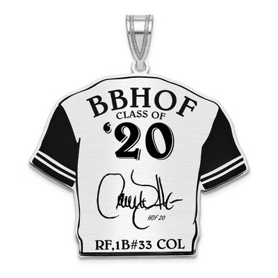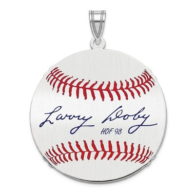 It is time to celebrate your favorite Hall of Fame baseball player, Larry Walker! We are a certified retailer and this authentic signature pendant is officially licensed. It is created from rhodium plated sterling silver with navy blue and red enamel and is approximately 39mm in width (1 1/2 inches or the size of a silver dollar). Brushed finish. Enamel colors may vary slightly. The color on your screen may also not reflect actual color due to variations in monitors and browsers. Chain not included. Made in the USA Additional features include: created from rhodium plated sterling silver & enamel; signature: larry walker; approximate size is 39mm wide (silver dollar) x 50mm length; average item weight is 10.5 grams.
