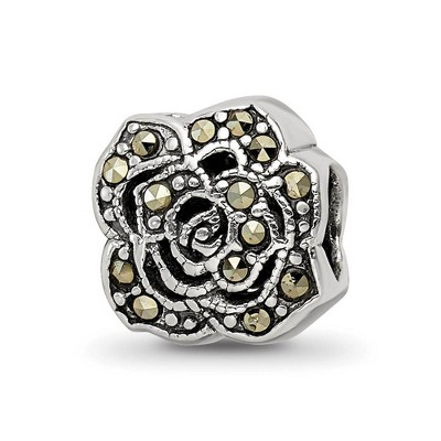 Product Name: Black Bow Jewelry Sterling Silver, Marcasite and Red Enamel Antiqued Apple Charm