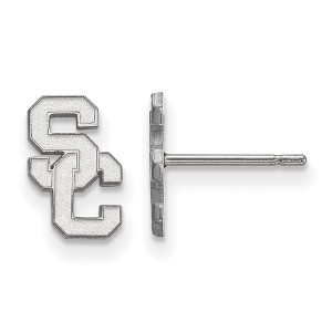 Show your school spirit with these University of Southern California extra-small post earrings! We are a certified Collegiate jewelry retailer and this authentic item is officially licensed. They are created from rhodium plated sterling silver and the approximate size is 5mm in width by 6mm in length. Made in the U.S.A. Additional features include: created from rhodium plated sterling silver; officially licensed by the university of southern california; approximate size is 5mm w x 6mm l; average weight for the pair is 0.67 grams.