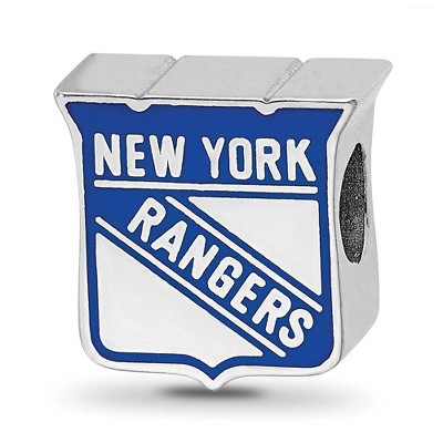 - Unique Features - It is time to celebrate your favorite team, the New York Rangers! This NHL enameled bead charm created from rhodium plated sterling silver is crafted in the USA. We are a certified retailer and this authentic item is officially licensed by the New York Rangers. The approximate size is 10mm (3/8 inch) in width by 11mm (7/16 inch) in length.
