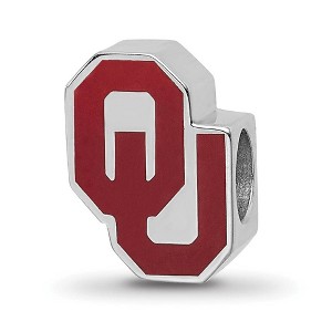- Unique Features - Show your school spirit with this University of Oklahoma bead charm. It is crafted from rhodium plated sterling silver with red enamel and measures approximately 9mm in width by 12.5mm in length. We are a certified retailer and this authentic item is officially licensed. This single sided bead charm is compatible with most major brand, 3mm width, bead style bracelets and necklaces. Enamel colors may vary slightly. The color on your screen may als...See description for more