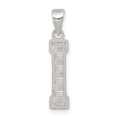 Make your mark and create a look that is all about you or special loved one with a bold block initial pendant designed from solid sterling silver. It features a polished and textured pattern and each letter measures approximately 16mm (5/8 Inch) in length, which dangles from a tapered bail giving it an overall length of approximately 25mm (1 Inch). Made in the U.S.A. Additional features include: crafted from solid sterling silver; features a polished and textured design; approximate length 16mm, with the bail it is 25mm; chain not included.