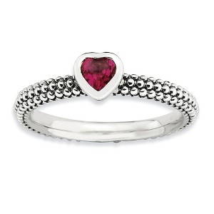 Black Bow Jewelry Sterling Silver Stackable 1/3 Carat Created Ruby Heart Ring - 1 of 4