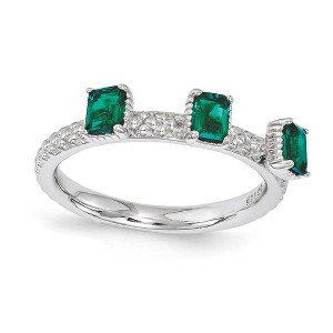 Black Bow Jewelry Sterling Silver Stackable Created Emerald Octagon Three Stone Ring - 1 of 4