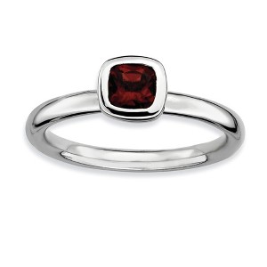Black Bow Jewelry Sterling Silver Stackable Cushion Cut Garnet Solitaire Ring - 1 of 4