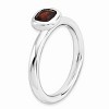 Black Bow Jewelry Sterling Silver Stackable Cushion Cut Garnet Solitaire Ring