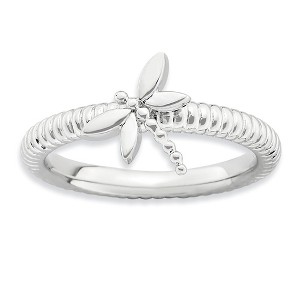• Unique Features - Fun and whimsical, appealing to all ages and can be worn alone or featured in a collection. This 2. Mm rhodium plated sterling silver band features a fluted design and a 10mm polished dragonfly. Guaranteed to fit together perfectly with all of the mix and match Stackable Expressions rings.