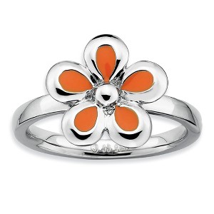 Product Name: Black Bow Jewelry Sterling Silver Stackable Orange Enameled Flower Ring