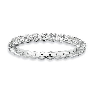 • Unique Features - White Topaz, April's birthstone is known as the stone of power, healing and protection; increasing awareness of thoughts and deeds. This 2.5mm polished band fashioned from rhodium plated sterling silver is prong set with round gemstones totaling .8 of a carat. Guaranteed to fit together perfectly with all of the mix and match Stackable Expressions rings.